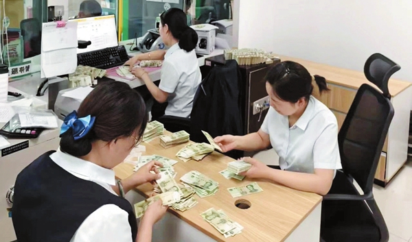 面对数量庞大且杂乱的零钱,营业部第一时间启动应急预案,迅速抽调多名业务骨干,成立专项小组,开展清分整理工作。简单分工后,大家各司其职,迅速投入紧张工作。有的工作人员专注于初步清点;有的凭借丰富经验和专业知识,仔细核验纸币真伪,确保每一笔业务准确无误;还有的将清点好的纸币按规格整理、捆扎,动作娴熟有序。
