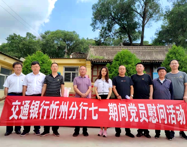 7月7日上午,交通银行忻州分行党委书记、行长李王芳带队走访慰问该行乡村振兴定点帮扶村——代县聂营镇康下庄村,为全村51名党员送去面粉、食用油等慰问品,共同庆祝建党百年。