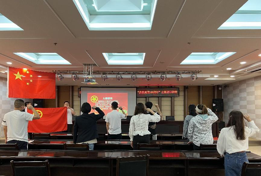 “我志愿加入中国共产主义青年团,坚决拥护中国共产党的领导......”与会人员高举右手握拳,面对团旗庄严宣誓,激昂有力的声音在会议室久久不能停息。通过重温入团誓词,公司团员青年对团许下了庄严承诺,时刻牢记初心使命,进一步激发青年爱党、爱国的热情。