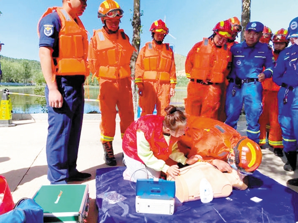 为了更好地协助政府应急救援与救灾抢险,8月25日上午,在神池县应急管理局、神池县红十字会、神池县消防大队、河曲县蓝天救援队等部门的协助和指导下,神池县蓝天救援队在西海子公园进行水面操舟驾驶、水面翻船自救、地面心肺复苏等项目演练,以备应战。