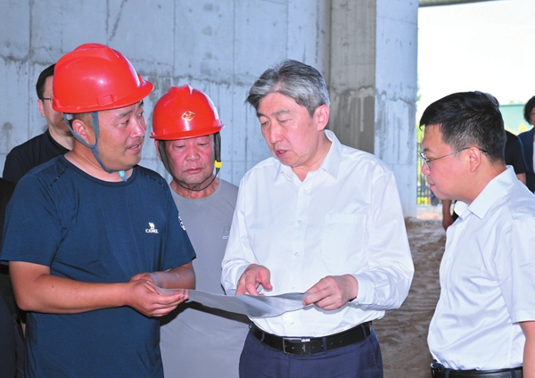 图为市委书记朱晓东在河曲县山西东昇创新科技有限公司调研10万吨脱硫石灰石粉项目建设情况。 冯晓磊摄