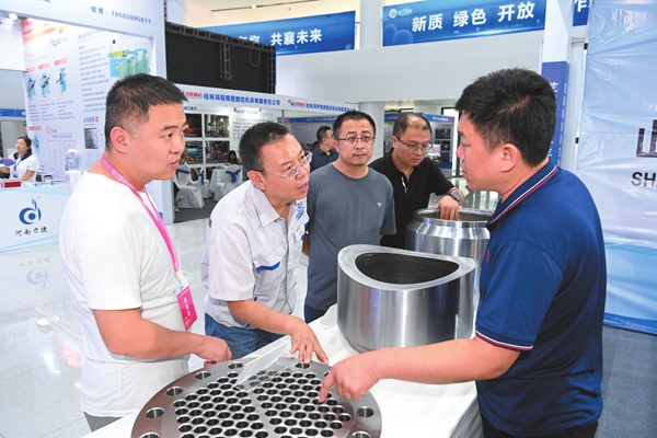 图为参展企业人员进行交流互动。张玉虎摄