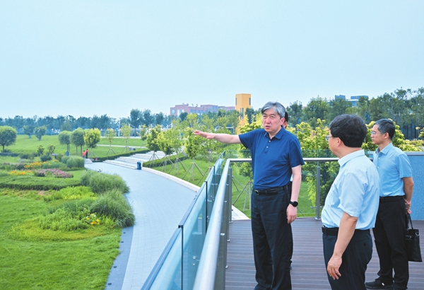 图为市委书记朱晓东在牧马河生态公园调研公园日常运行管理情况。 冯晓磊摄