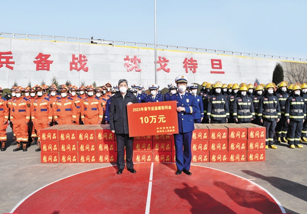 一月十八日,忻州市委书记朱晓东在九源街特勤消防救援站慰问一线消防救援人员。 冯晓磊摄