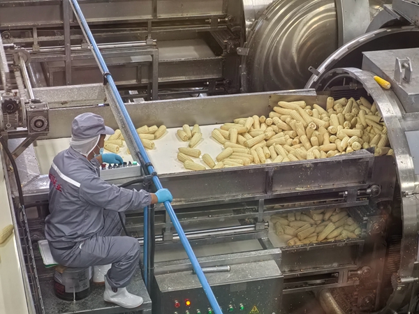 记者实地采访,看到产业园的4条速冻生产线、5条真空加工生产线,秋上正开足马力紧锣密鼓不违农时热火朝天加班生产,每小时加工27万穗玉米,成了目前国内规模最大、智能化程度最高的鲜食玉米加工基地之一。五寨甜糯玉米产业园内的玉米加工车间全自动化生产线上,鲜食玉米经过去皮、切梗、分级、包装、蒸煮等工序,变成高品质的速冻玉米和真空玉米。目前,年加工能力达2亿穗,其中速冻玉米6000万穗,真空玉米1.4亿穗。同时利用生物质发电热水供热,降低能耗,绿色低碳生产。有序构建“卫星遥感+物联网+区块链”智慧农业系统,形成从种植管理到产品追溯的全链条数字化,既保障产品质量与市场竞争力,又走出了一条产业振兴与乡村振兴有机结合落地见效的新路径。