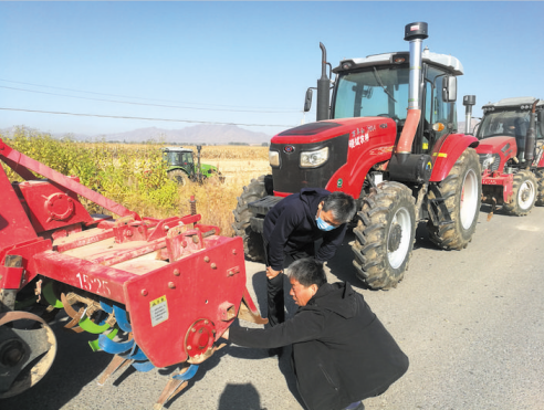 图为10月13日,该县农机服务中心工作人员对深松整地的机械卫星定位传感器进行调试,确保作业面积、作业质量等参数准确。
