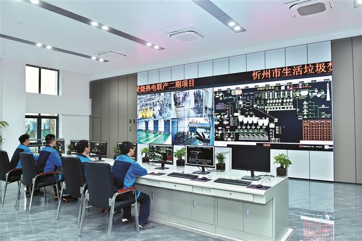 洁晋发电有限公司生活垃圾焚烧热电联产项目控制室。冯晓磊摄