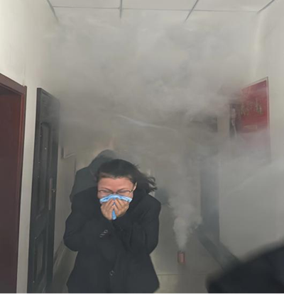 为确保预案演练取得实效,支行预先制定了相关的行动指挥方案。演练前,支行组织全体人员在会议室集中进行了相关消防安全业务知识的培训。演练中,模拟办公楼发生火灾的场景,支行应急小组的指挥大家按疏散路线安全有序地朝各安全通道疏散,所有人沿着消防疏散通道,弯腰屈膝捂住口鼻安全有序逃离火灾现场。全体疏散后,随即又开展灭火演练,让员工实际操作如何使用灭火器。