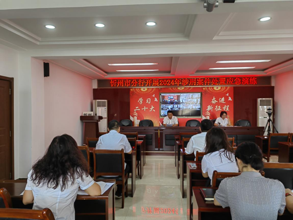 为进一步提升案件处置应急管理能力,增强案防工作质效,农发行忻州市分行组织辖内机构于2024年7月24日召开了2024年涉刑案件处置应急演练。会议以“现场+视频”形式召开。