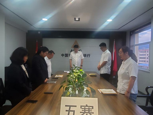 伴随着防空警报响起,农发行五寨县支行全体员工低头肃立,为逝去的革命先烈集体默哀。凄厉刺耳的警报声警醒我们,要铭记历史,珍爱和平。我们铭记历史不是为延续仇恨,而是为了致敬先烈们的浴血奋战,致敬那场永不妥协的战争,致敬中华民族不屈的脊梁。