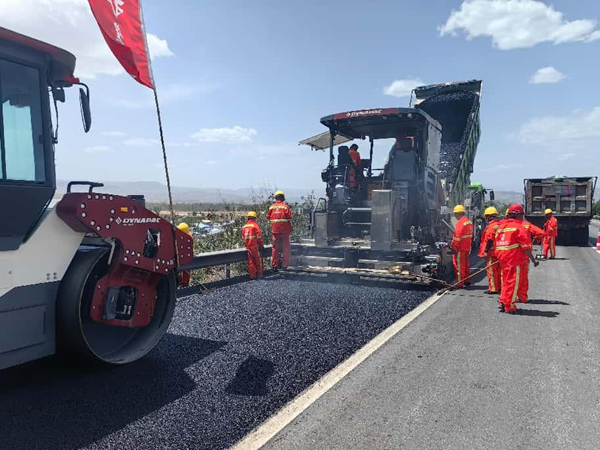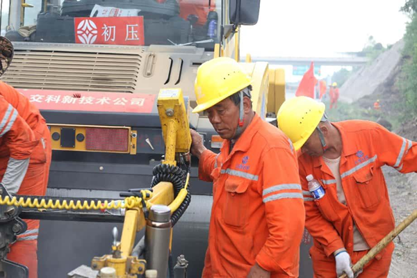 趁热攻坚,汗水浇筑通途。“沥青摊铺必须‘趁热打铁’,温度越高,路面压实度、密实度就越好!”项目技术负责人解释道。烈日炙烤下,沥青混合料温度高达160℃,升腾的热气裹挟着刺鼻气味扑面而来,但施工人员手持铁锹、紧盯摊铺机的身影却始终坚定。每一车沥青的倾倒下料、每一寸路面的均匀碾压,都需要在几分钟内精准完成。豆大的汗珠顺着安全帽檐滴落,在沥青路面上瞬间蒸腾,施工人员的工作服早已被汗水浸透,又在高温中反复晒干,崭新的道路,就这样在灼热与坚守中悄然延伸。
