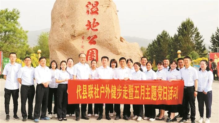 近日,代县联社机关党支部、工会联合在代县湿地公园开展“”健步走主题党日活动,旨在深入学习贯彻习近平新时代中国特色社会主义思想,扎实开展主题教育,积极探索“党建+工会”活动模式,推动职工活动与理论学习相结合,激励广大党员干部坚定不移听党话、跟党走,以实际行动为忻州农信事业高质量发展贡献力量。(韩苏伟摄)