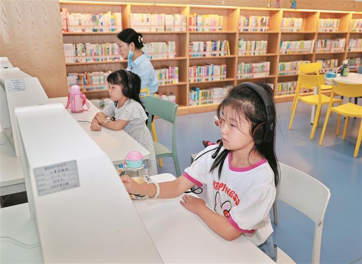多彩暑期是孩子们博览群书的最佳时期。7月28日,在市图书馆,小读者们在儿童阅读机上体验点触、互动学习的快乐。(张存良摄)