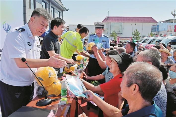 近日,忻州公安交警走进东楼乡南肖村开展交通安全巡回宣讲活动。活动现场,民警为村民免费发放安全头盔,并提醒村民自觉摒弃交通陋习,遵守交通法规,安全文明出行。 (赵建军摄)