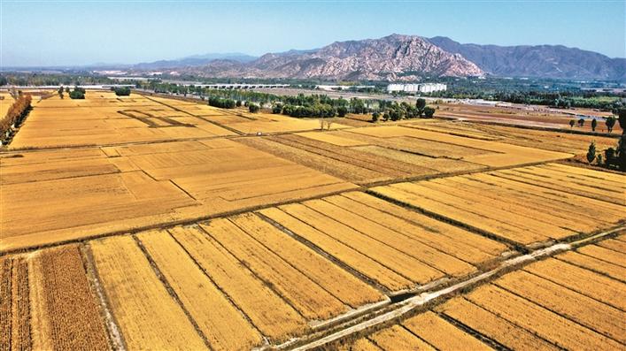 10月16日,原平市天涯山下滹沱河畔大、小库狄村,田园秋色,如诗如画。该市万亩水稻进入成熟期,到处呈现出一片金黄的美景,宛如一幅色彩斑斓的秋日田园画卷,让人如痴如醉。 (褚 震摄)