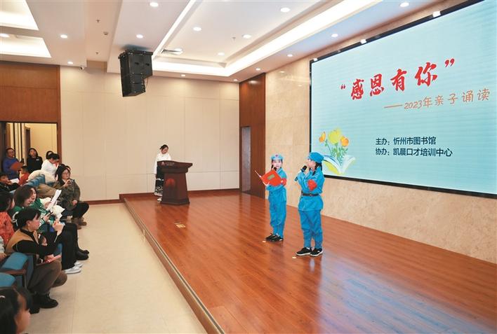 为进一步激发少年儿童的阅读兴趣,营造浓厚的家庭读书氛围,11月26日,忻州市图书馆组织开展了“感恩有你”亲子诵读活动,吸引了全市亲子家庭积极参与。(张存良摄)