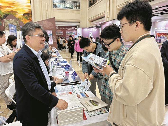 忻州市工作人员为大学生讲解引才政策。 (宫爱文摄)