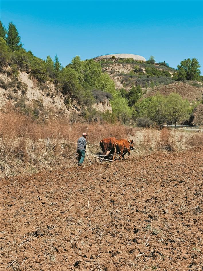 眼下,在岢岚县田间地头,随处可见农民耕地、播种、施肥的身影。图为西豹峪村村民正在田间耕种。 (刘芝彤摄)