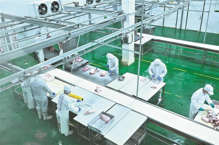 神池现代农业产业示范区从龙头引进、政策扶持、品种改良、链条延伸、品牌打造等方面精准发力,系统推动羊产业链高质量发展。图为神池县天牧生物科技有限公司中央厨房、羊肉精深加工生产线现场。(冯晓磊摄)