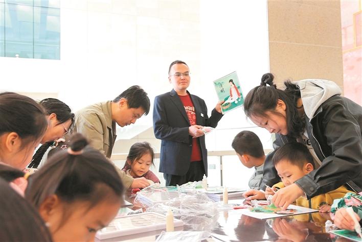 近日,为弘扬传统文化,培养孩子们的动手能力与协作精神,忻州市博物馆举办了一场别开生面的“五谷杂粮画”手工活动。图为博物馆工作人员正在向参加活动的家庭讲解如何制作“五谷画”。 (范 琛摄)