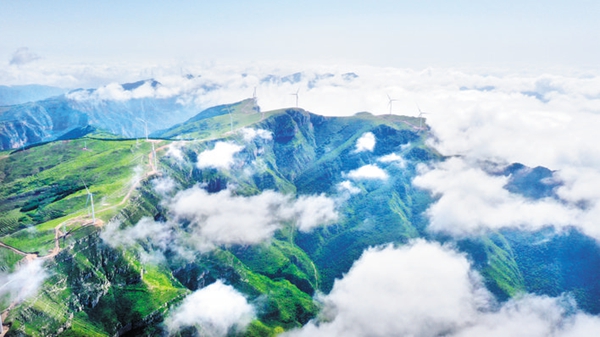 漫山遍野大风车,云似羊群从下过。这是定襄县系舟山脉的真实写照。近年来,定襄县委、县政府坚持低碳发展、高质量发展,大力发展新能源产业,在华电集团50兆瓦风力发电项目成功建成后,又上马了太重集团100兆瓦风力发电项目,围绕“绿水青山”打造“金山银山”。(张晋兰摄)