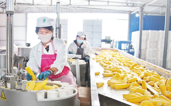 进入7月下旬,五寨县甜糯玉米产业园各生产企业陆续进入产销旺季,该县康宇田源农业股份有限公司手工精选甜糯玉米包装生产线已开机生产,为大量搬迁户解决了就业问题。目前该生产线已平稳运行4年,每天可精选包装甜糯玉米8万穗左右,生产旺季每天可精选包装玉米15万穗至20万穗,在这里工作的搬迁户每人每天可以拿到140元工资。图为8月25日,工人们正在生产线上忙碌工作。 (张向荣摄)