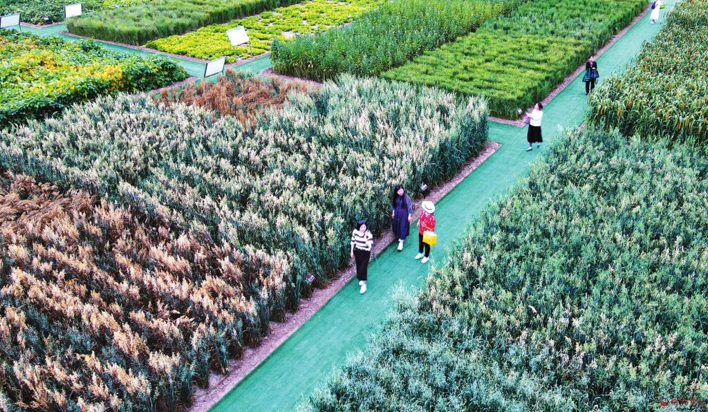 9月23日,游客在忻州市“中国杂粮之都”杂粮科技展示园内参观。忻州作为2022年中国农民丰收节山西主场活动举办地,先后举办“国宝与农耕文明”专题展、山西药茶展示品鉴活动、杂粮产品展示展销暨杂粮美食节、全省农民书画摄影展、群众庆丰收等丰富多彩的活动。(张存良摄)