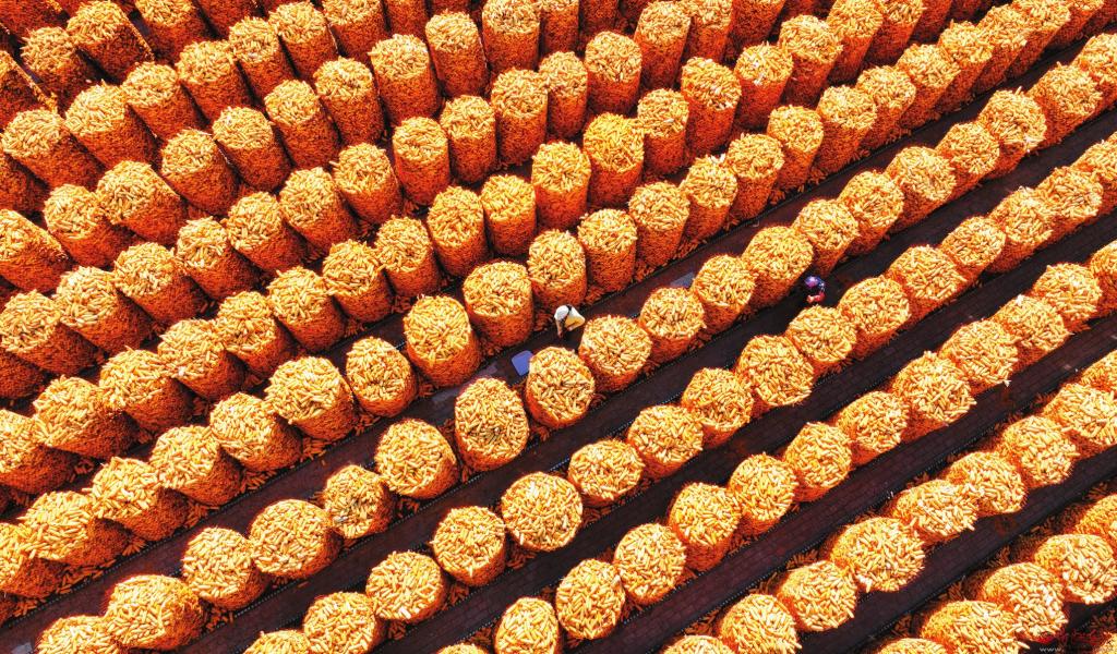 近日,定襄县蒋村镇史家岗村一农业合作社农民正在整理丰收的粮囤。农业合作社通过良种良法配套、农机农艺融合,种地更加专业化、精细化,农民丰收的底气更足了。 (张晋兰摄)