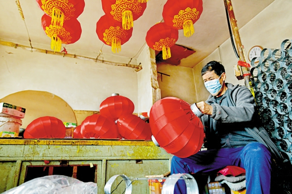 新年伊始,五台县阳白乡上金山村村民正忙着制作红灯笼。近年来,红灯笼加工已经成为上金山村增收致富的一项重点产业,并且形成了产业优势。 (卢俊华摄)