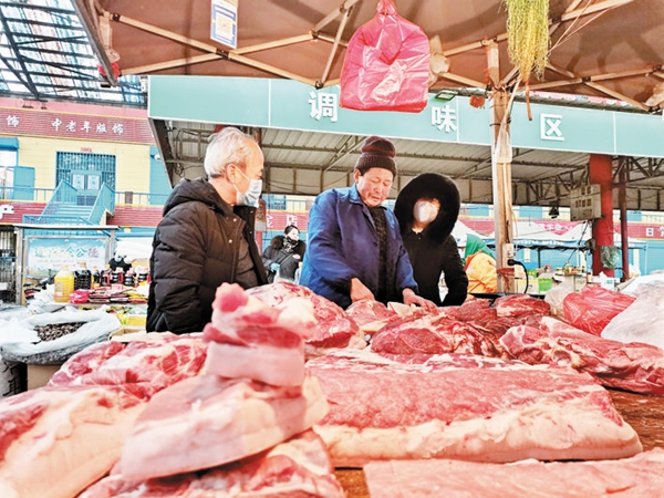 1月31日,忻州市民在神池县民生市场购买猪肉。这个春节,大街小巷又恢复了久违的热闹,洋溢着消费的热情,城市“烟火气”正不断释放经济新活力。 (王羚芷摄)