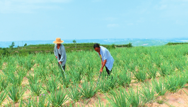 近日,保德县林遮峪乡郝家庄村的红葱地里,连片的红葱在蓝天白云映衬下郁郁葱葱,长势喜人。田间地头,村民们正忙着除草、管护,一派繁忙景象。