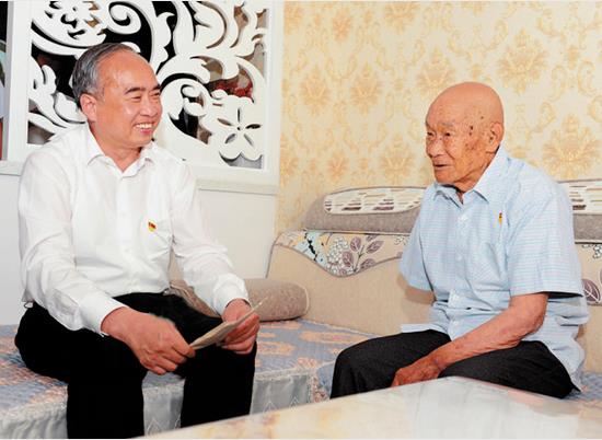6月30日,省长林武看望慰问老党员田万喜,认真听老人讲述自己当年的革命经历,关切地询问老人的生活情况。(张巨峰 李兆民)