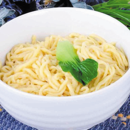 豆面稍加白面制成的豆面河捞是五寨当地的特色杂粮主食,经特制的河捞床下到锅里,待面压到一定长度,截断面条,煮熟后配上各种浇头,吃着筋滑利口。(张志远)