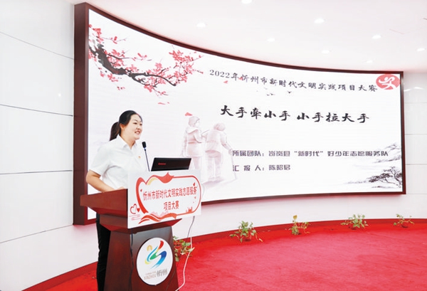 9月5日,忻州市举行新时代文明实践志愿服务项目大赛,进一步弘扬“奉献、友爱、互助、进步”的志愿服务精神,培育具有忻州特色的志愿服务项目,推动忻州市志愿服务常态化、项目化发展。本次大赛由市委宣传部、市委文明办主办,来自忻州市14个县市区的39名志愿者参加比赛。比赛现场,参赛者们围绕技艺传承、生态环保、公益课堂等39个项目背景、实施情况等内容,通过答辩等形式讲述故事,让大家充分领略了志愿服务的无限魅力和活力。 (张存良摄)