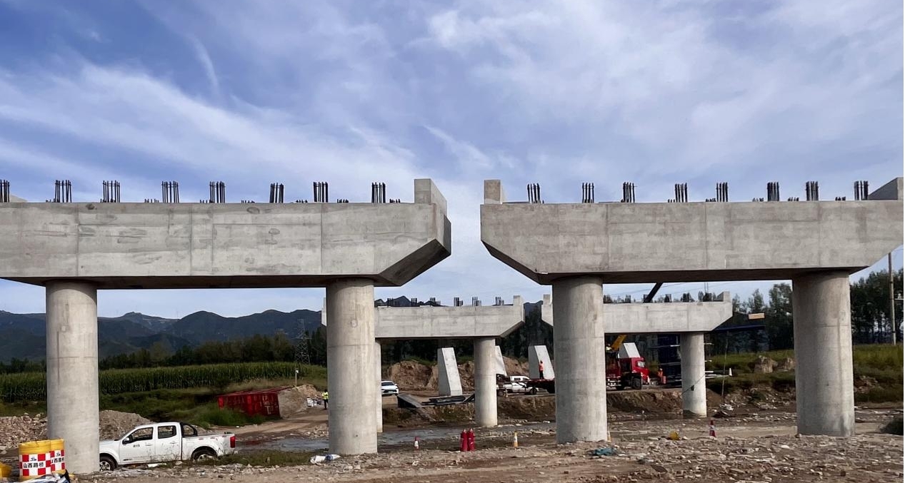 柳院河中桥桥梁中心桩号为K46+294,右前夹角60度,上部结构采用3-30米装配式预应力砼T梁,以“先简支后连续”体系组成一联;下部结构桥台为肋板台、桥墩为柱式墩,墩台均以钻孔灌注桩为基础,全桥共设计桩基32根。施工期间,项目部坚守“务实高效、质量为先”的工作理念,一方面细化施工节点计划,将任务分解到岗、责任落实到人,确保各环节衔接有序;另一方面强化现场管控,严格把控桩基成孔、钢筋绑扎、混凝土浇筑等关键工序质量,同时做好安全风险预判与防范措施,在保障施工安全的前提下,稳步推进建设进度。