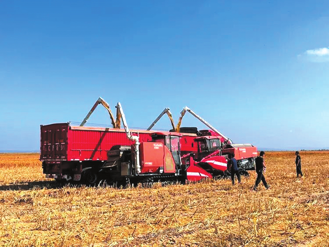 在种植前期,北斗系统已深度介入生产流程。施肥拖拉机依托北斗定位实现厘米级直线行走,精准控制化肥播撒量,同步降低成本与污染;与精量播种机智能联动,确保种子播撒行距均匀,土地利用率提升5%。秋收作为成果检验的关键环节,久盛农牧业发展有限公司投入的4台联合收割机配合新型杂粮割台,在北斗导航引导下高效运转——以往需1个月的收割任务,如今10天即可完成。得益于前期均匀的播种行距设计,在前日连续雨天来临前,收割机快速推进,实现颗粒归仓,机收损失率明显下降。