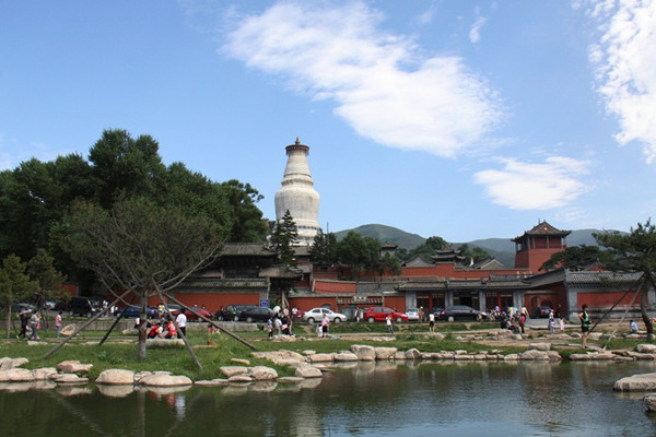 五台山,雄踞山西省东北部,由东台、南台、西台、北台和中台五峰环绕而成,“五峰耸出,顶无林木,有如垒土之台”,因此而名。这里,“岁积坚冰,夏仍飞雪,曾无炎暑”,故又称清凉山。玉啸庵也有诗曰:“五月行踪人大孚,万松如剪雪平铺”。五台山属太行山系的北端,跨忻州市繁峙县、代县、原平市、定襄县、五台县、盂县和河北省阜平县。它处于黄土高原上,一般土地干旱、树木稀少,但这里却树木葱茏,物产丰富。
