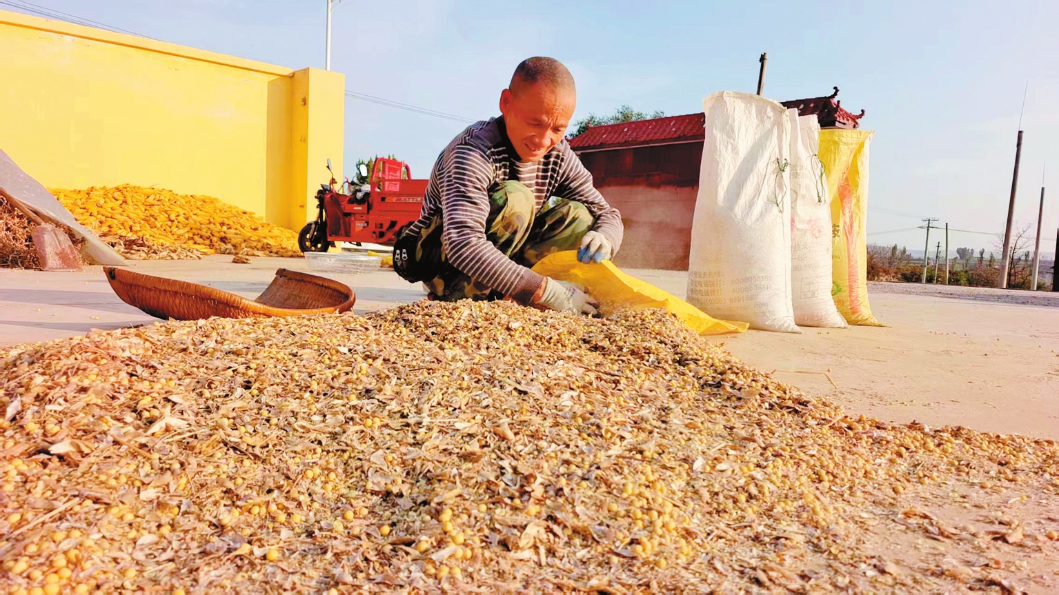 近日,河曲县唐家会村的村民们正晾晒收获的黄豆,确保颗粒归仓。赵慧芳摄