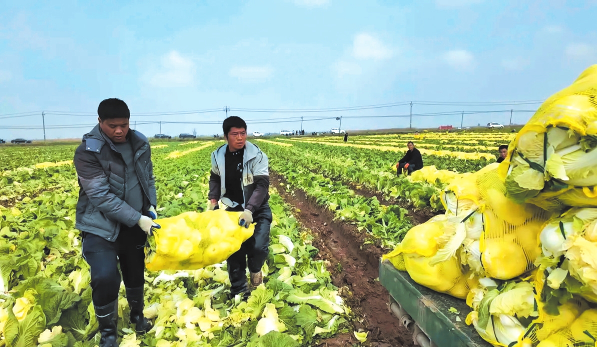 村民正在收获白菜