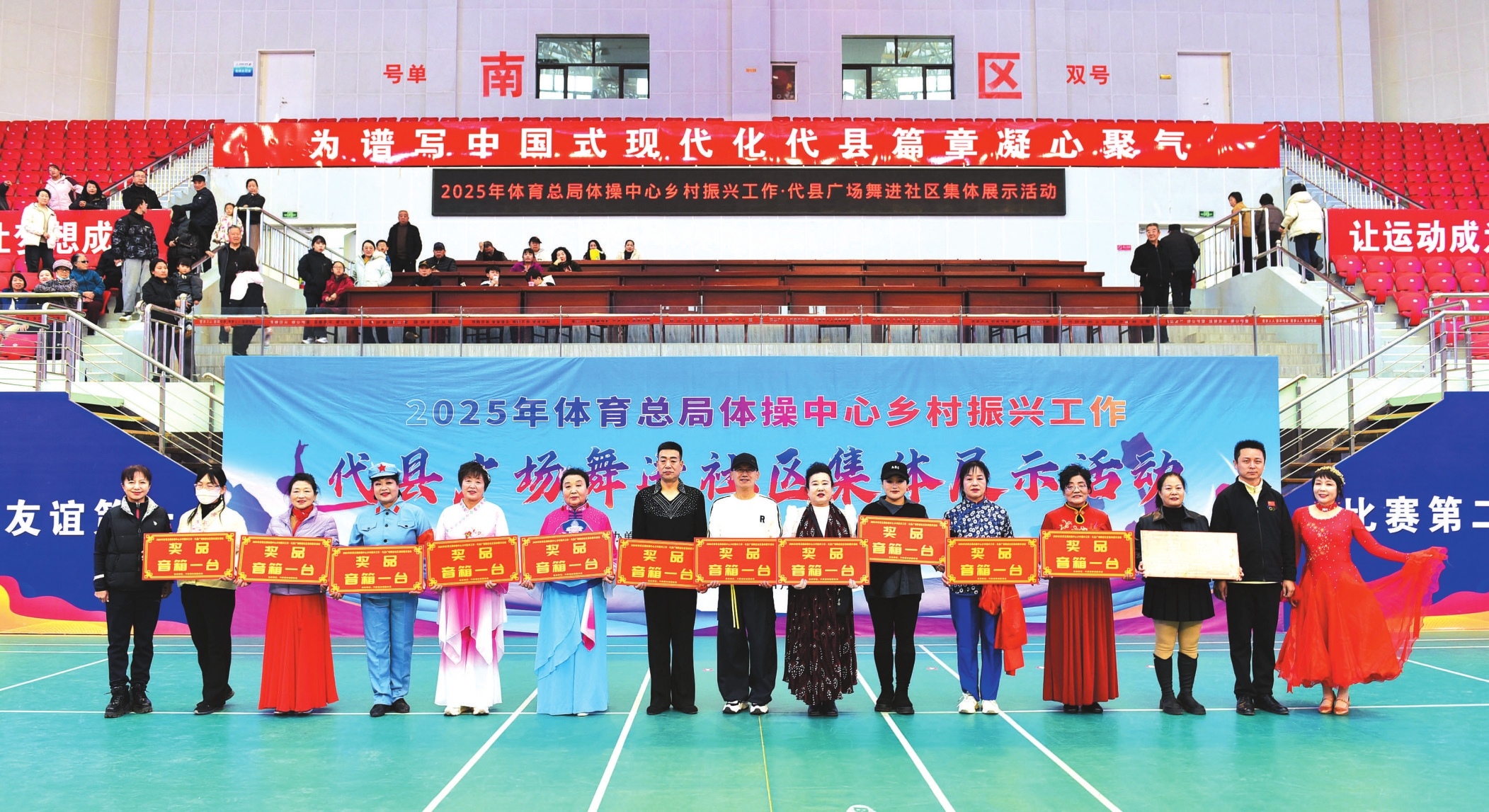 11月15日,2025年国家体育总局体操运动管理中心乡村振兴系列活动——代县广场舞进社区集体展示活动在新城体育馆举行。活动由国家体育总局体操运动管理中心主办,太原市啦啦操运动协会、代县体育事业发展中心承办,代县健身舞蹈协会、代县大南街华为授权体验店协办。来自全县各乡镇、社区的12支代表队依次登场,以饱满的热情和优美的舞姿,为观众奉献了一场精彩纷呈的广场舞盛宴。石俊文摄