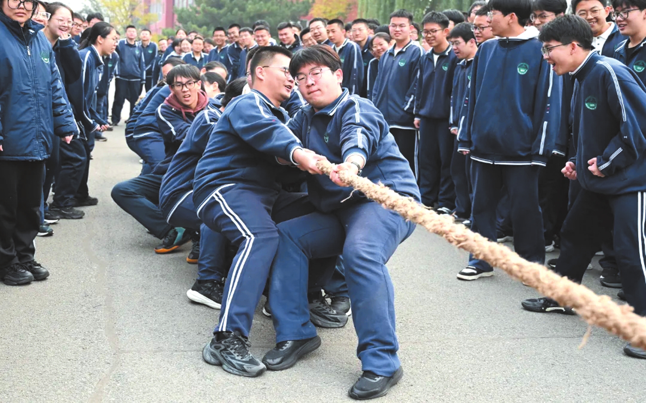 近日,忻州实验中学第22届校园文化艺术体育节拔河比赛举行。比赛哨声一响,赛场瞬间沸腾。参赛队员们紧握长绳,双脚蹬地,身体后倾,每一个动作都凝聚着集体的力量与智慧。老师们化身为全情投入的啦啦队长,挥动双臂,声嘶力竭地为队员们指挥节奏;各班同学则自发组成阵容强大后援团,将现场氛围一次次推向高潮。冯伟伦摄