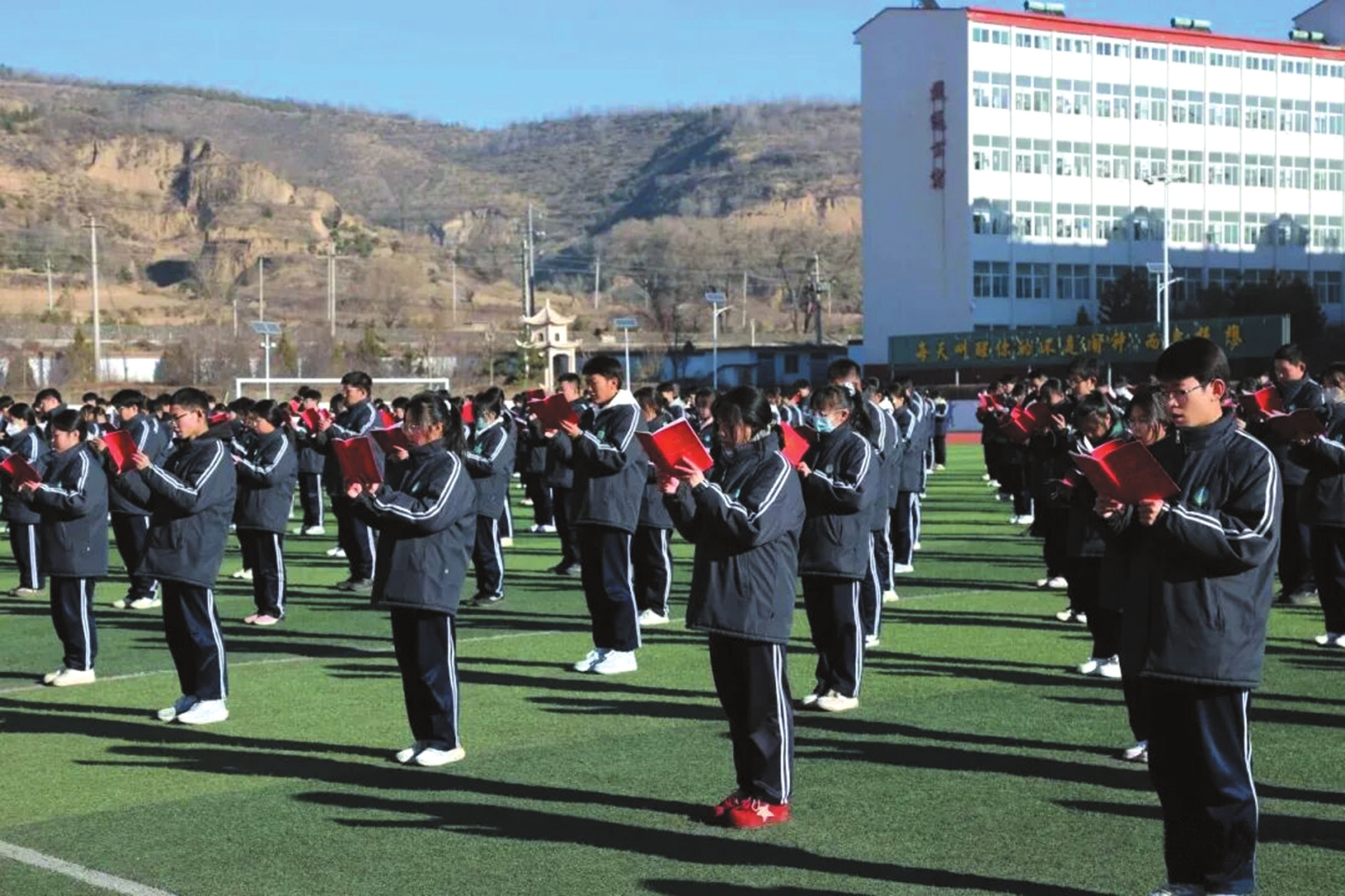 宪法晨读润心灵,法治精神伴成长。12月4日是第十二个国家宪法日,岢岚中学全体师生齐聚操场,开展“宪法晨读”活动,拉开了为期7天的校园“宪法宣传周”活动序幕。