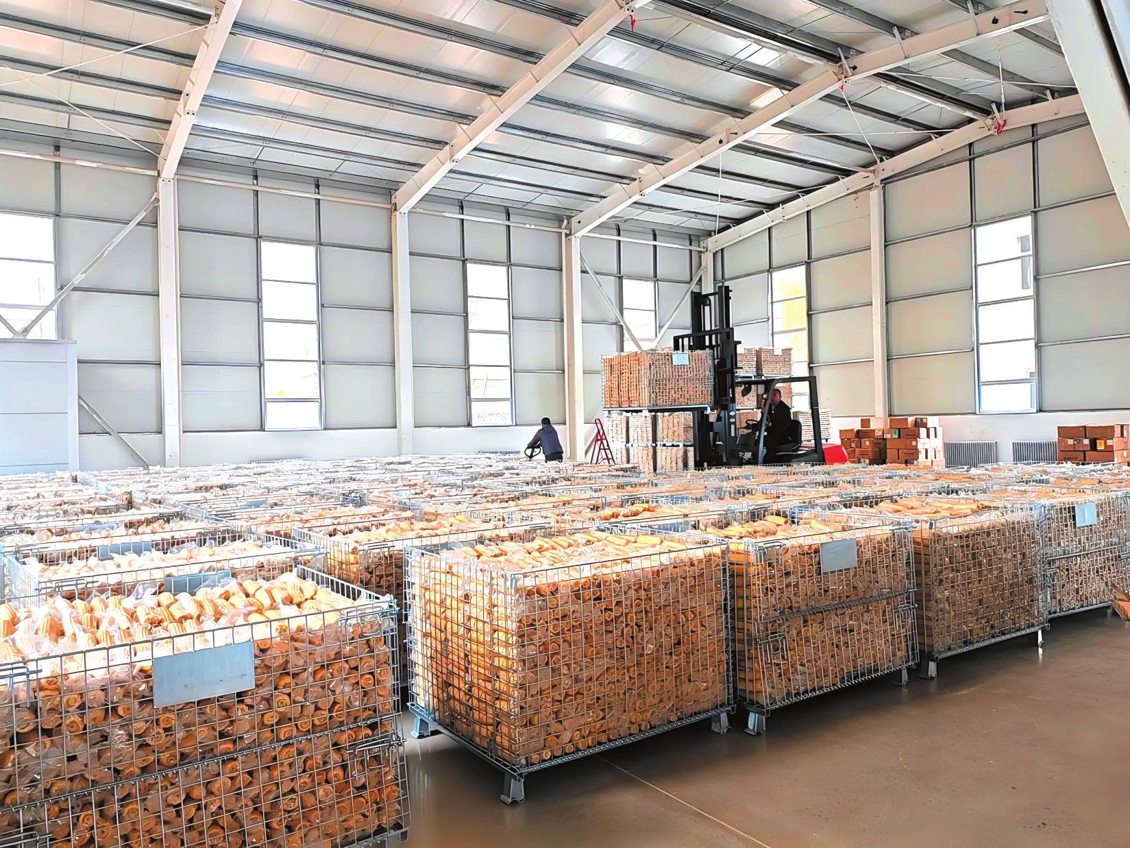 在静乐县农耕归本农业发展有限公司年产1亿穗鲜食玉米加工厂建设项目现场,包装车间呈现出一派紧张有序的繁忙景象。记者看到,宽敞的钢结构厂房内,一辆红色叉车高举着真空包装的成品玉米,驾驶员正专注地调整货叉角度,将货物精准放至指定区域。