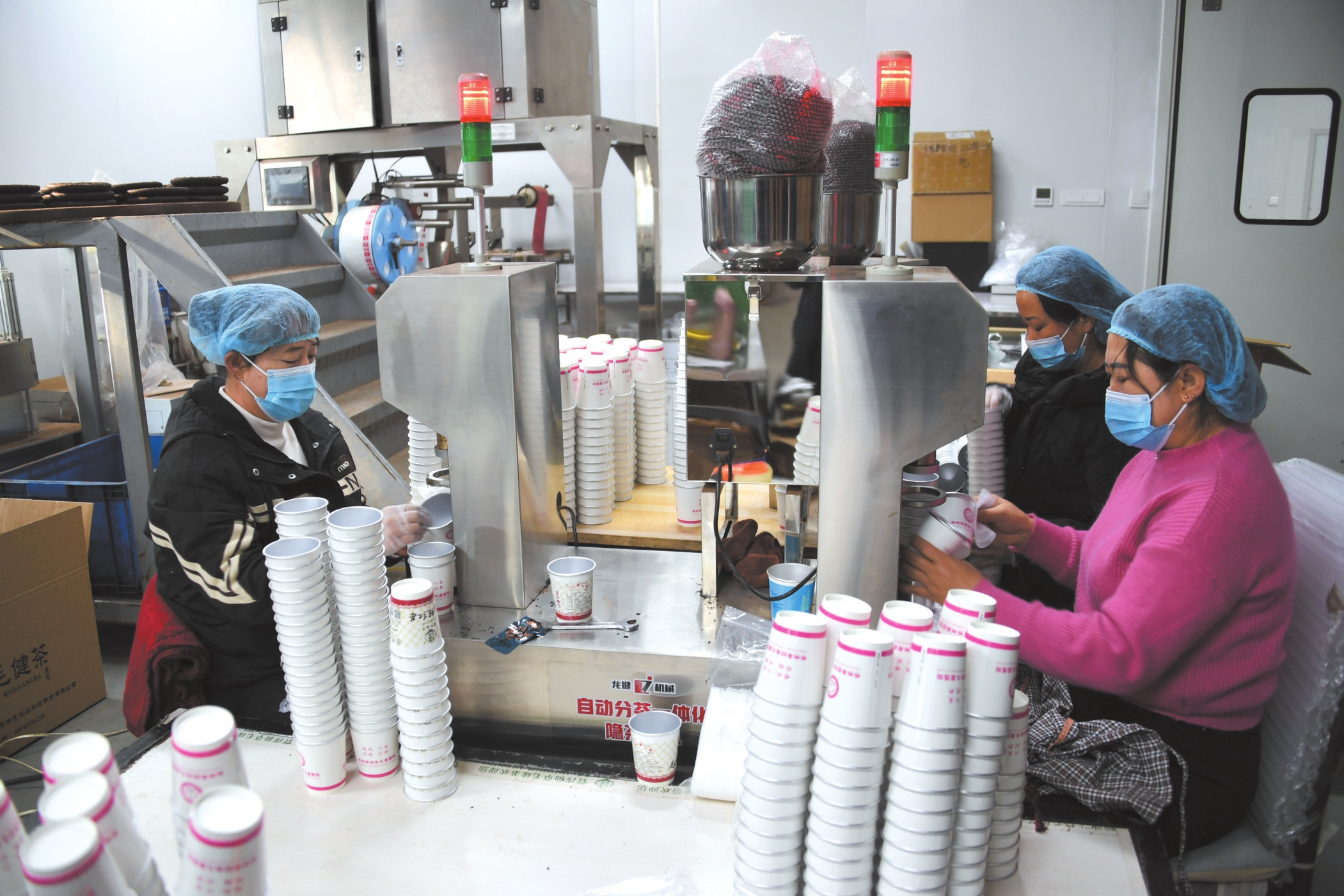 十二月六日,宁武县管涔仙草特色农业科技开发有限公司的工人正在包装毛健茶。该企业在传统手工制茶工艺的基础上,创新融入现代工艺技术,大力打造品牌产品,既提升了产品附加值,也带动了当地农户增收和县域产业振兴。刘纪森摄