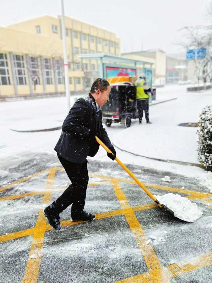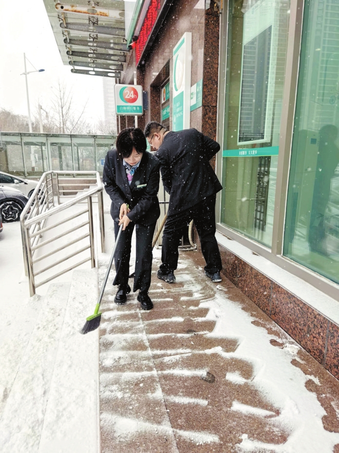 面对我市首场强降雪,农行忻州分行员工以雪为令,及时清扫网点及周边区域,确保服务通道畅通无阻,以实际行动传递了温暖的金融服务。殷俊摄