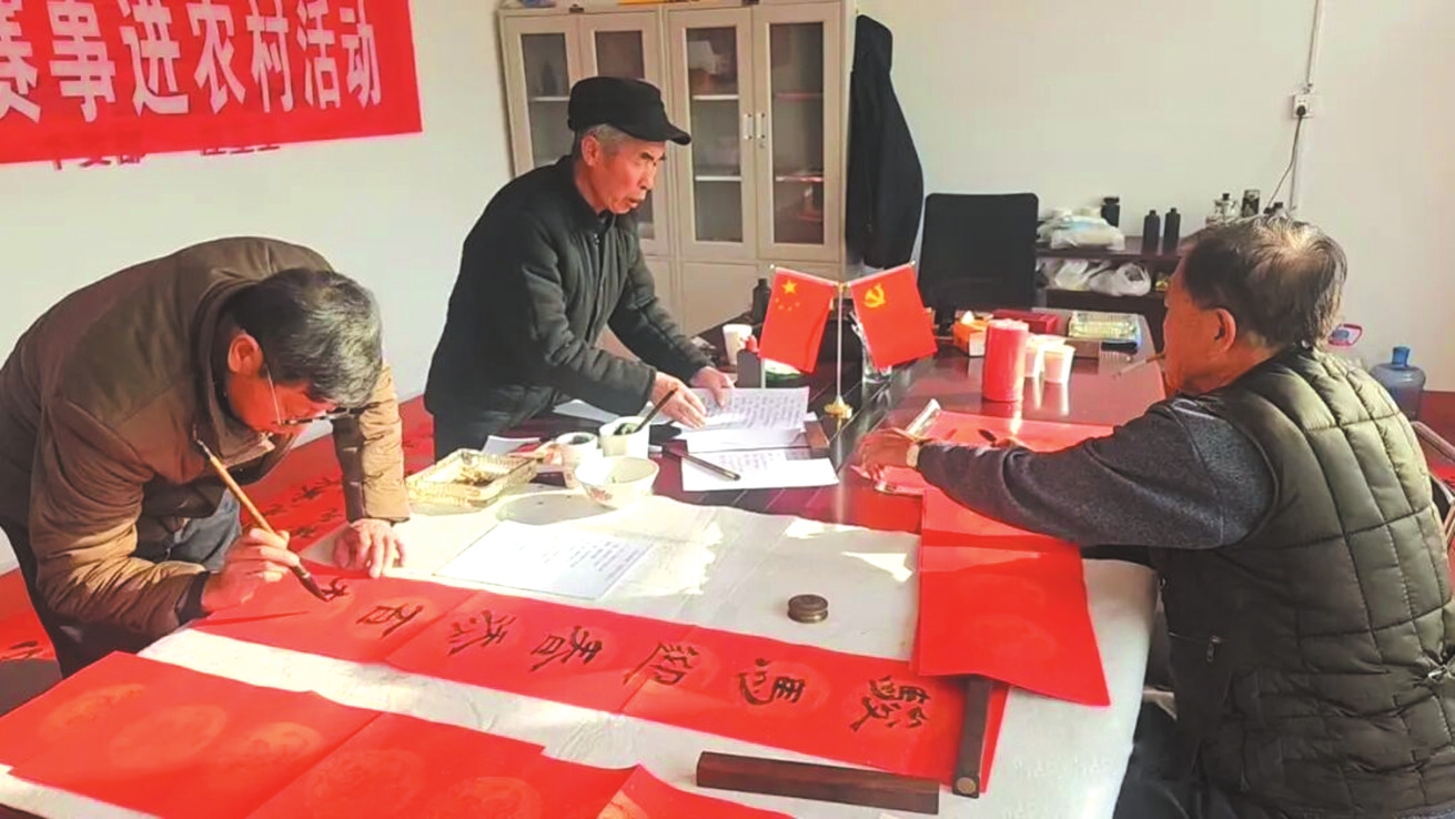 活动现场,红纸铺展、墨香四溢。村里的书法爱好者齐聚一堂,凝神聚力、挥毫泼墨。一副副笔力遒劲的对联,或描绘乡村振兴的喜人图景,或书写阖家团圆的幸福期盼,既融入“产业兴旺”“乡风文明”的村务发展愿景,又饱含辞旧迎新的美好祝愿。“小河奔涌催产业,乡村振兴惠民生”“芥菜飘香日子旺,家园和美幸福长”等贴合本村发展特色的春联,更是赢得村民们的连连称赞。