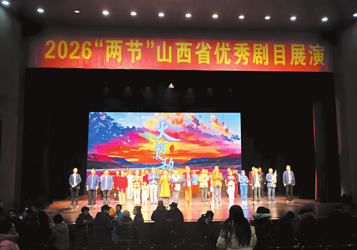 1月14日、15日晚,太原市青年宫演艺中心气氛热烈。由忻州市委宣传部、忻州市文化和旅游局与河曲县委、县政府联合打造的大型非遗音乐剧《大河长歌》作为我市唯一入选剧目,在2026年“两节”山西省优秀剧目展演中精彩亮相、连演两场。