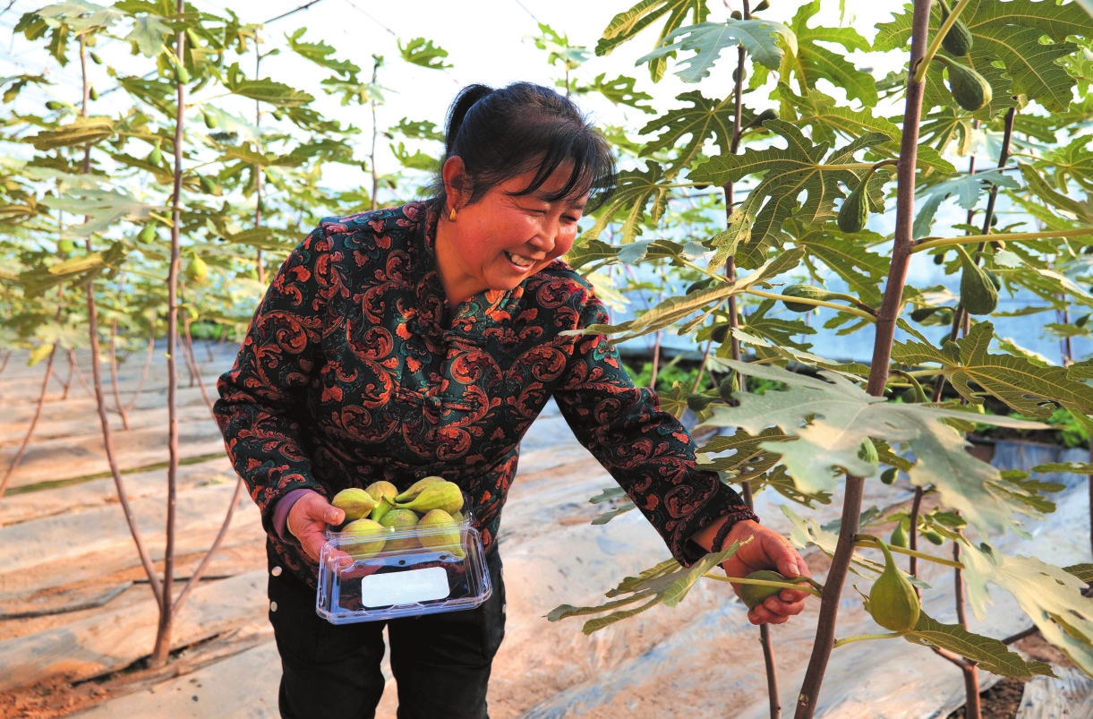 “这‘芭劳奈’无花果刚上市,每天来采摘、订购的人就持续不断。”唐家会村种植户吕彩兰一边采摘果实一边介绍。作为村里特色种植的“带头人”,她亲眼见证了大棚从“简陋棚膜”到“智能温室”的转变。2025年,吕彩兰夫妇通过外出考察,引进了当地罕见的无花果品种“芭劳奈”。得益于黄河滩地特有的沙质土壤和充足光照,这种果实软糯清甜,每斤售价达40元,成了市场上的“香饽饽”。