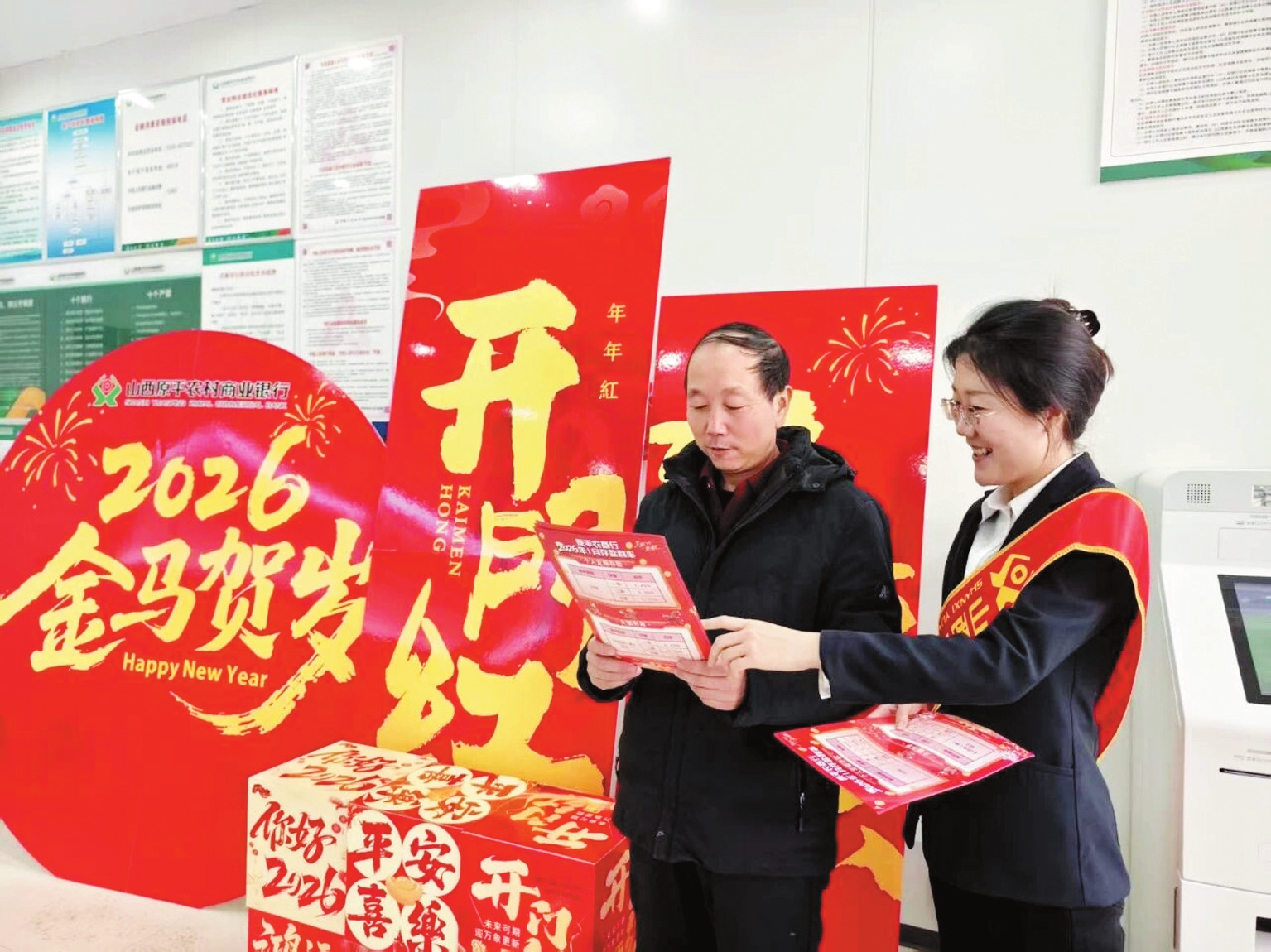 原平农商银行东社支行聚焦辖区客户需求,双措并举促业务发展。一方面亮化厅堂、优化服务,高效办理业务并推出特色产品;另一方面上门走访个体经营户,推介“惠商赢”信贷产品、维护“晋享e付”收款码,精准满足商户节前资金与经营需求,以金融服务助力商户迎新春。