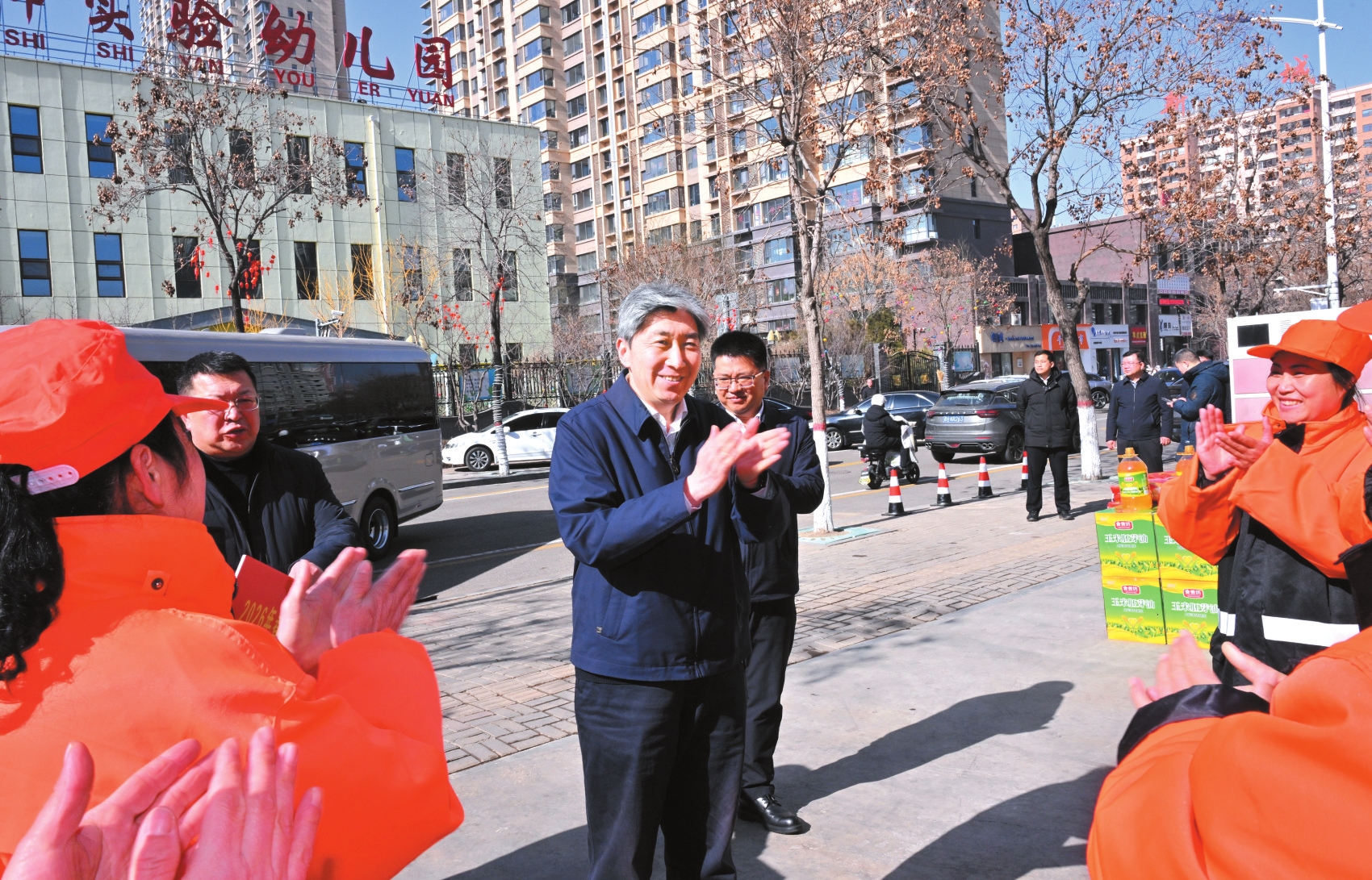 “大家用勤劳的双手扮靓了城市,是当之无愧的‘城市美容师’。”朱晓东说,春节期间是城市保洁的关键时期,希望大家继续发扬吃苦耐劳的优良作风,同时注意劳逸结合、做好防寒保暖。相关部门要持续改善环卫工人的工作条件,让大家的辛勤付出得到更多理解和尊重。
